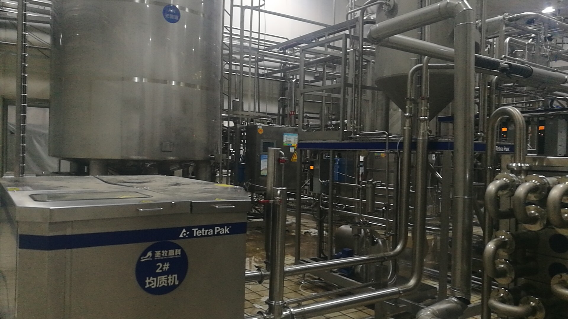 鼎佳峰UHT內(nèi)部管路連接完成,主電纜和均質(zhì)機電纜安裝完成,排放完成,信號線連接完成,能源管路除濃酸堿其余全部連接完成,無菌管線等管件到達